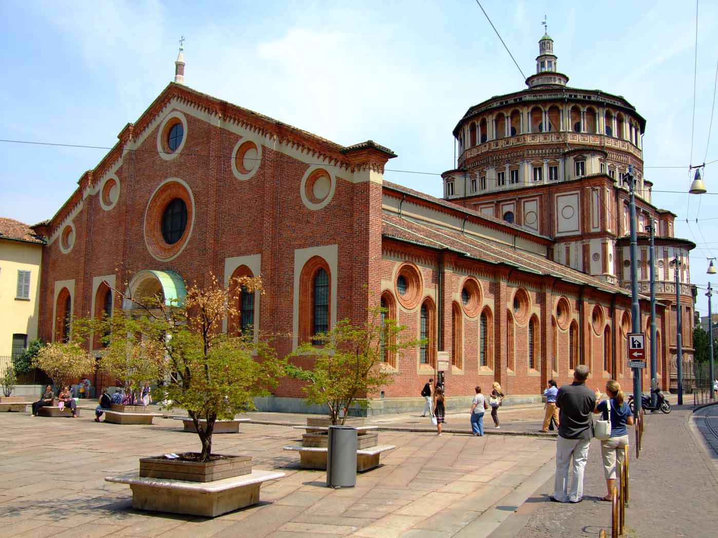 A Santa Maria delle Grazie Milánó legszebb reneszánsz temploma. Francesco Sforza, Milánó hercege rendelte el az építését 1463-ban, Guiniforte Solari építész 1466-tól 1490-ig dolgozott a bazilika, valamint a mellette található dominikánus kolostor munkáin, a kolostor viszont már előbb, 1469-ben elkészült. A nyeregtetős templom homlokzata lombard gótikus, a márványkapu pedig reneszánsz; a két stílus keveredése megfigyelhető az építmény többi részén is.